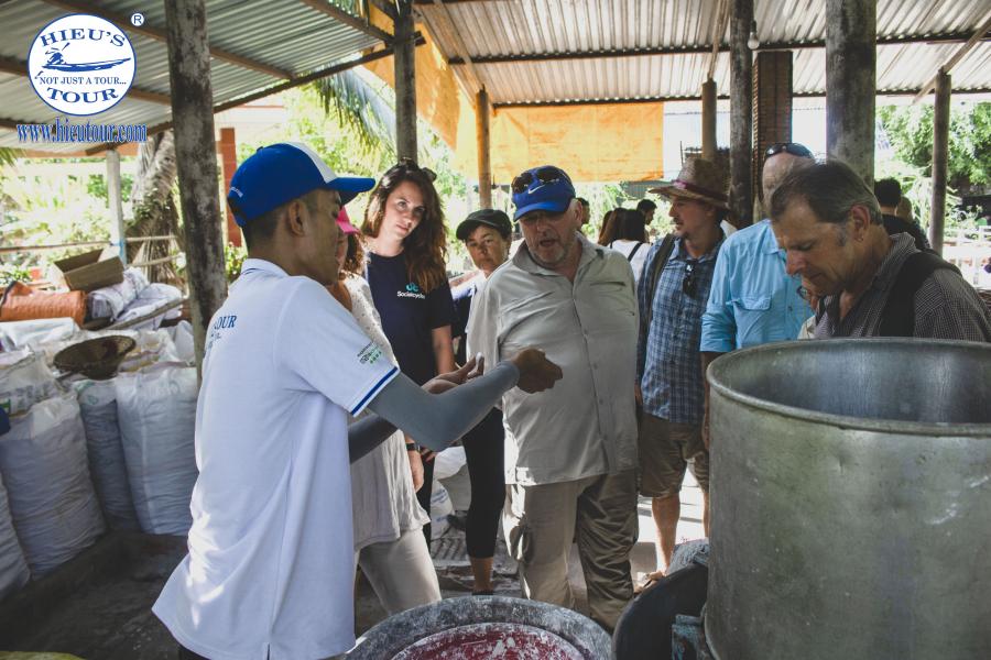 You are warmly welcomed by Hieutour Co., Ltd tour guide and start your morning excursion on the boat. We weave into every corner of the largest Cai Rang floating market for a deep understanding of how locals can trade agricultural commodities on the river. Enjoy typical Mekong breakfast and drinks purchasing from floating boat venders, feel like a local! If you are curious about the process to make Mekong noodle, the next stop will give you a clear answer. We stop on land and in a small noodle-making workshop, you can watch step by step how people produce typical noodles and try your hand in making them, too. Moreover, you have a great chance to taste its specialty Noodle Pizza.