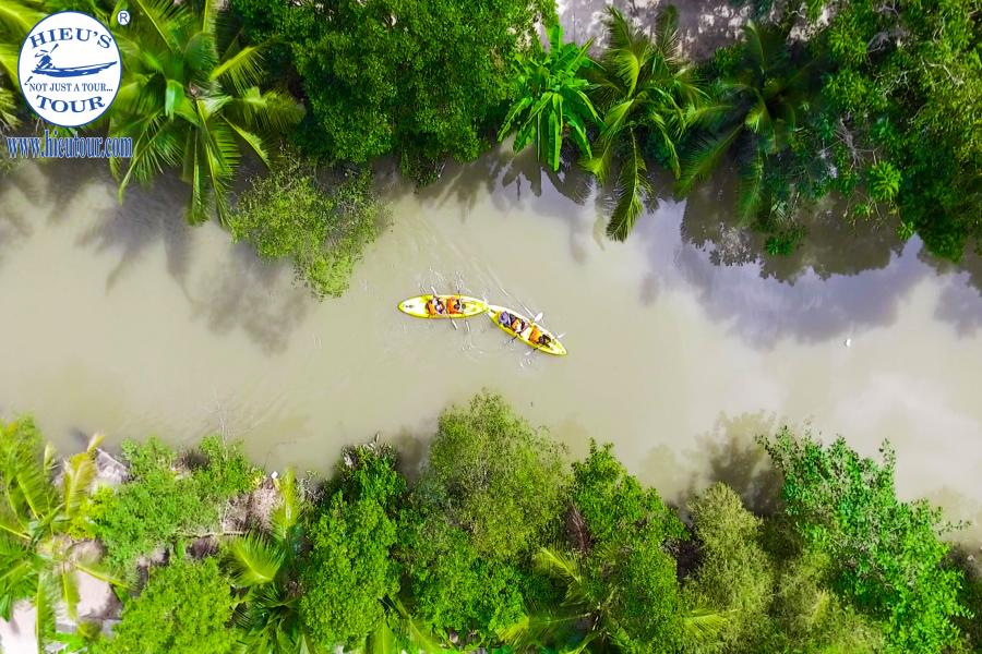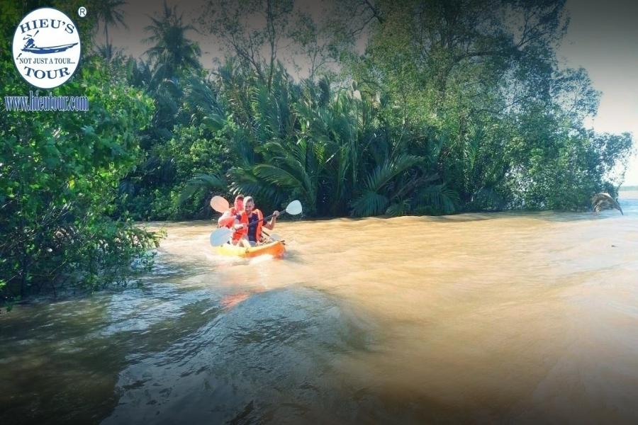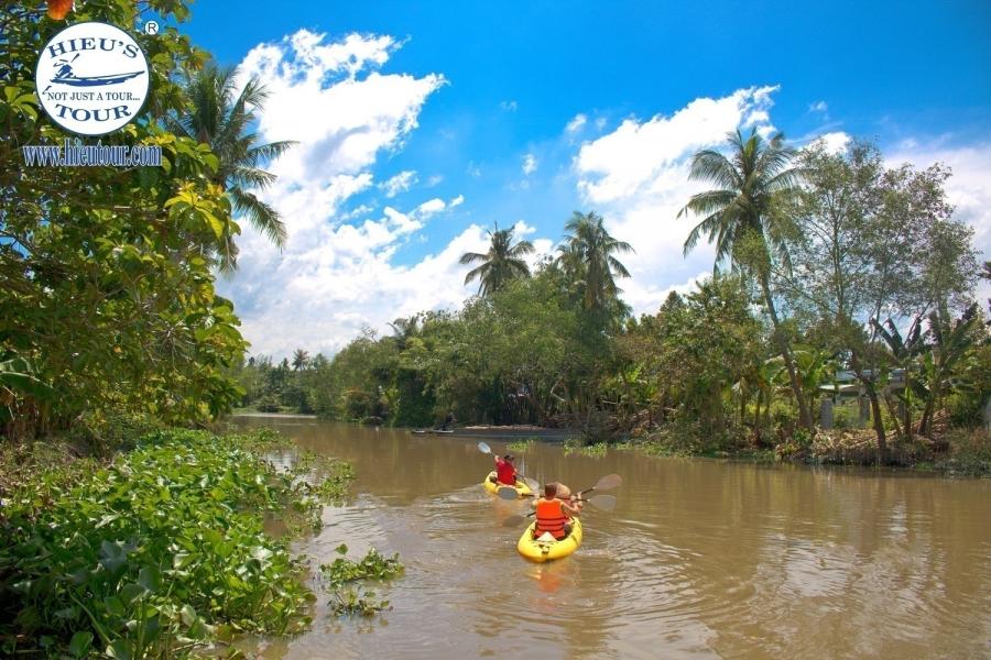 8:30 am our boat cruise from the big river to a smaller one on the way to eco-village of Can Tho. During one hour on the boat, you easily watch the daily life of people along the riverside and see the gradually changing atmosphere from urban to a rural place. Arriving at the local homestay which is truly ecological and non-touristic. Are you ready for exercise? Join the fantastic Kayaking in magnificent jungle lined tributaries. Enjoy your great moments paddling and relaxing under the shade of coconut trees along the bank immerse yourself in a peaceful rural life of South Vietnam. At noon, we can join the funny cooking activity to help the local family make spring rolls and prepare for your delicious local lunch.